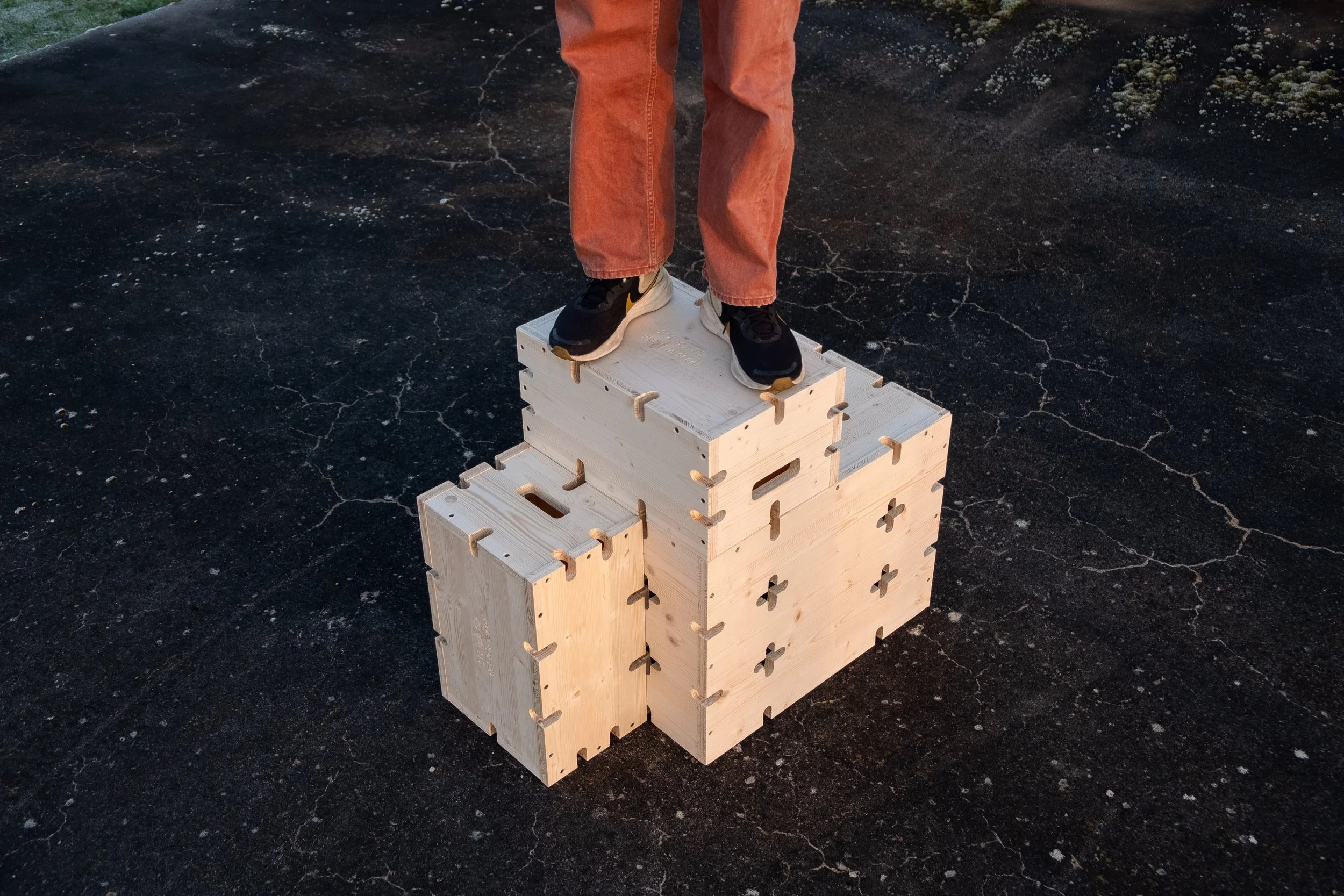 The installation creates a shared space where people can see and be seen, meet, converse, and take their place. The boxes act as a democratic foundation—both literally and symbolically.